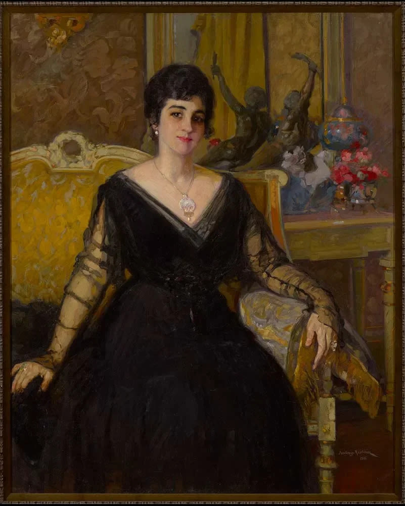 En este retrato su autor muestra a una mujer que por el vestido y joyas