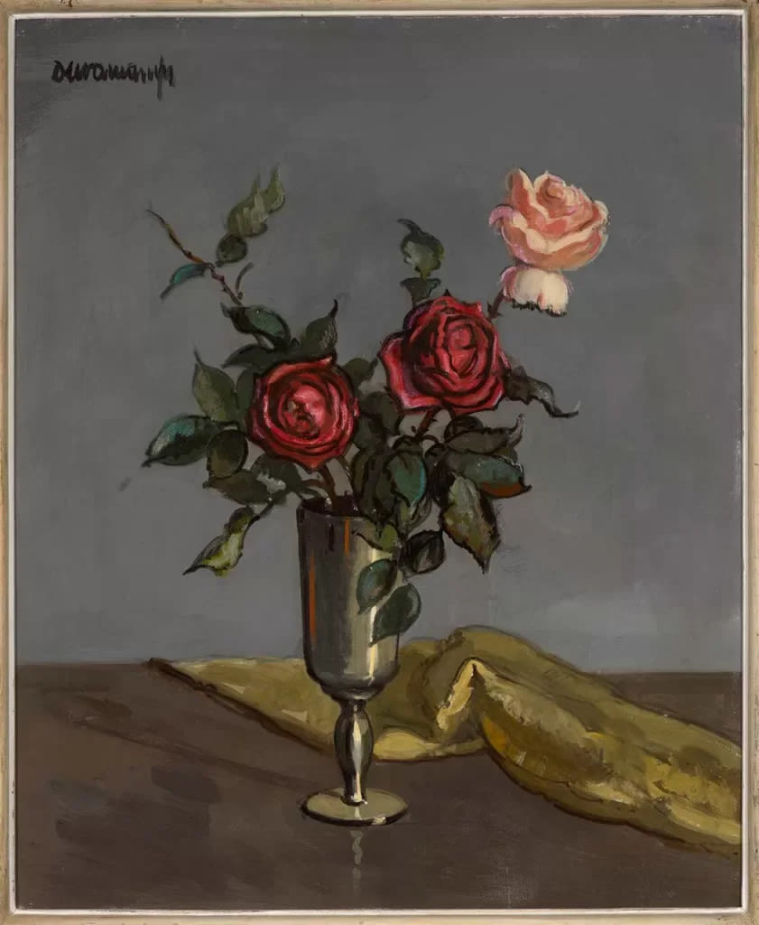 Rafael Durancamps Folguera es el autor de la obra Florero con rosas, es una obra que sigue el estilo de Figuración. Esta pintado al Óleo sobre una tabla. Esta firmado: Durancamps, en ángulo superior izquierdo. Podemos ver en la obra representado unas rosas en un florero. Tiene un tamaño sin marco de 60cm x 49cm.