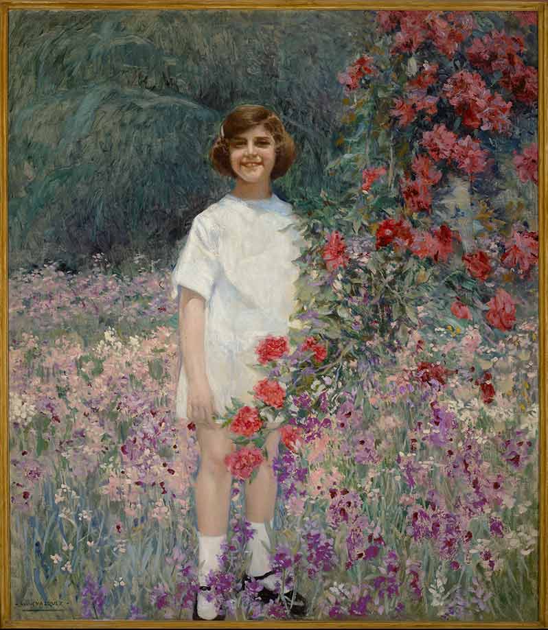 Obra realizada por Carlos Vázquez llamada Retrato de niña en el jardín. Es un cuadro característica del modernismo catalán. Pintado al Óleo sobre Lienzo. Firmado: Carlos Vázquez, en ángulo inferior izquierdo. Tiene un tamaño sin marco de 150cm x 130cm.