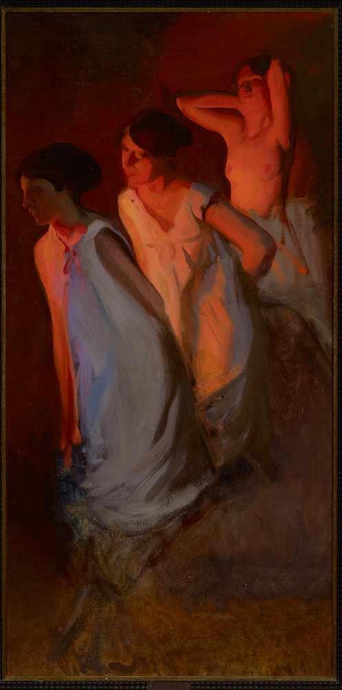 Obra titulada Estudio para las endemoniadas es perteneciente a Fernando Labrada Martín. Tiene un estilo de Realismo-Expresionismo. Esta pintado al Óleo sobre lienzo. En la parte baja central del marco hay una placa en la que se lee: «LABRADA». En la parte trasera pone como título del cuadro «Jóvenes». También en la parte trasera hay restos anchos de lienzo; posiblemente el cuadro tenía otra medida o estaba preparado para que fuera más grande. Según Inventario, el cuadro puede denominarse como Estudio para las Endemoniadas o Fanatismo . Según información en una tarjeta de Arte, Información y Gestión (Casa de Subastas), este cuadro titulado como Estudio para las endemoniadas o Fanatismo, pone lo siguiente: «Boceto para el cuadro definitivo -de grandes dimensiones- destruido por el pintor, cuyo tema se inspiraba en una costumbre exorcista de la que tuvo noticia en Calatayud en la primavera de 1912. Tiene un tamaño sin marco de 109cm x 54cm.