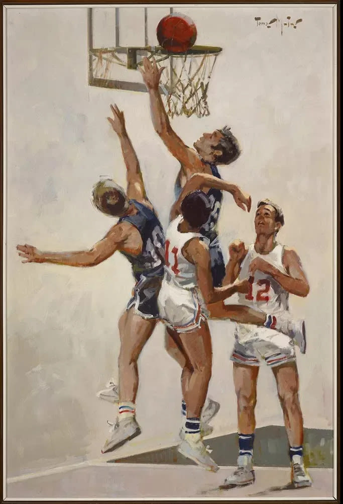Esta obra llamada Basketball es perteneciente a Francisco Torres Matas, sigue la corriente del Impresionismo. Esta pintado al óleo sobre una tabla. Se puede encontrar la firma en el ángulo superior derecho (Firmado: Torres Matas) esta fechado a 1981 según catálogo. Tiene un tamaño sin marco de 108cm x 73cm.